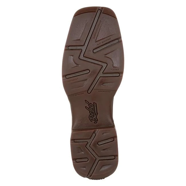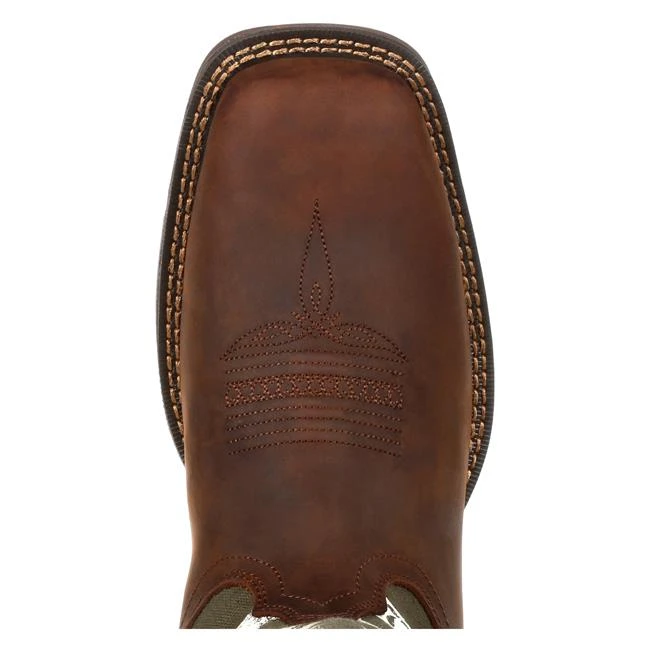 This style features a full-grain leather foot, collar and pull straps with a canvas shaft. Inside it has a soft mesh lining, the Durango X-Pand System which is a hidden gore expansion for universal fit and easy on/off, the Durango X-Treme Comfort Footbed with memory foam for all day comfort and support, and a cushion flex insole. This style also features a fiberglass shank which provides lightweight stability and the rolled shank area allows easy placement in the stirrup. The molded EVA midsole is lightweight and flexible, and the outsole is slip and oil resistant, dual-density and abrasion resistant rubber. This style also features a double row sole stitch, 1 ½” rocker heel and square toe.