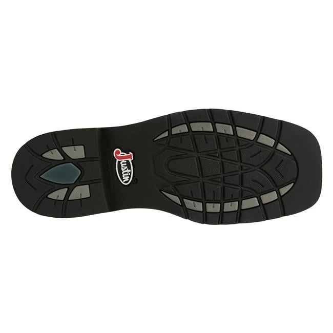 The 11″ Keavan Broad Square Toe Met Guard ST WP from Justin Original Work Boots is a boot packed full of features to keep your foot safe, protected and comfortable through the toughest work conditions. Waterproof construction keeps out rain, working along with the J-Flex Flexible Comfort System cushioned insole and shock absorbing gel heel pad to make sure that your foot is comfortable and dry no matter the weather. An oil, slip and abrasion resistant rubber and EVA combination outsole ensures stable footing on rough terrain, while the met guard and steel toe work to provide superior protection for your feet and toes from heavy objects. A performance storm welt and full grain leather construction mean that these boots will stand the test of time.