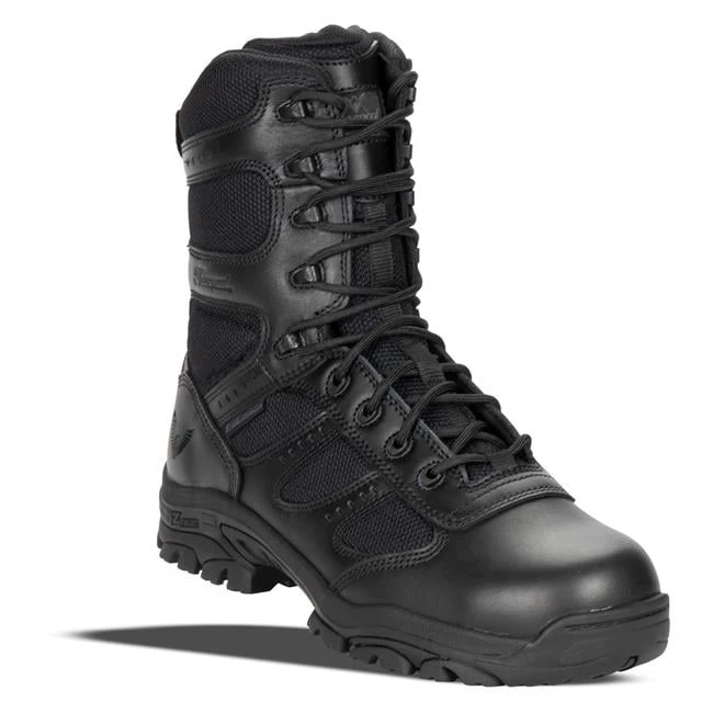 Thorogood’s 8″ The Deuce WP SZ is a hard-working tactical boot suited for the roughest of terrain. It incorporates an innovative Z-Trac ASR rubber outsole, a ThoroDri waterproof membrane and a polyurethane Shock Zone insole to provide superior comfort, support and protection for long days on the job or in the field. Two-zone moisture-wicking technology in the mesh lining expels excess moisture and sweat to keep feet cool and dry, even when running or performing strenuous actions. The boot features water, slip and blood-borne pathogen resistance, as well as EVA impact pads in the outsole, which absorb shock for softer landings and increased energy return with every step. The outsole is designed to maintain traction on uneven and rocky terrain and the Shock Zone insole promotes ventilation to prevent overheating and foot fatigue. Thorogood has engineered this boot to keep you safe and comfortable, no matter what.